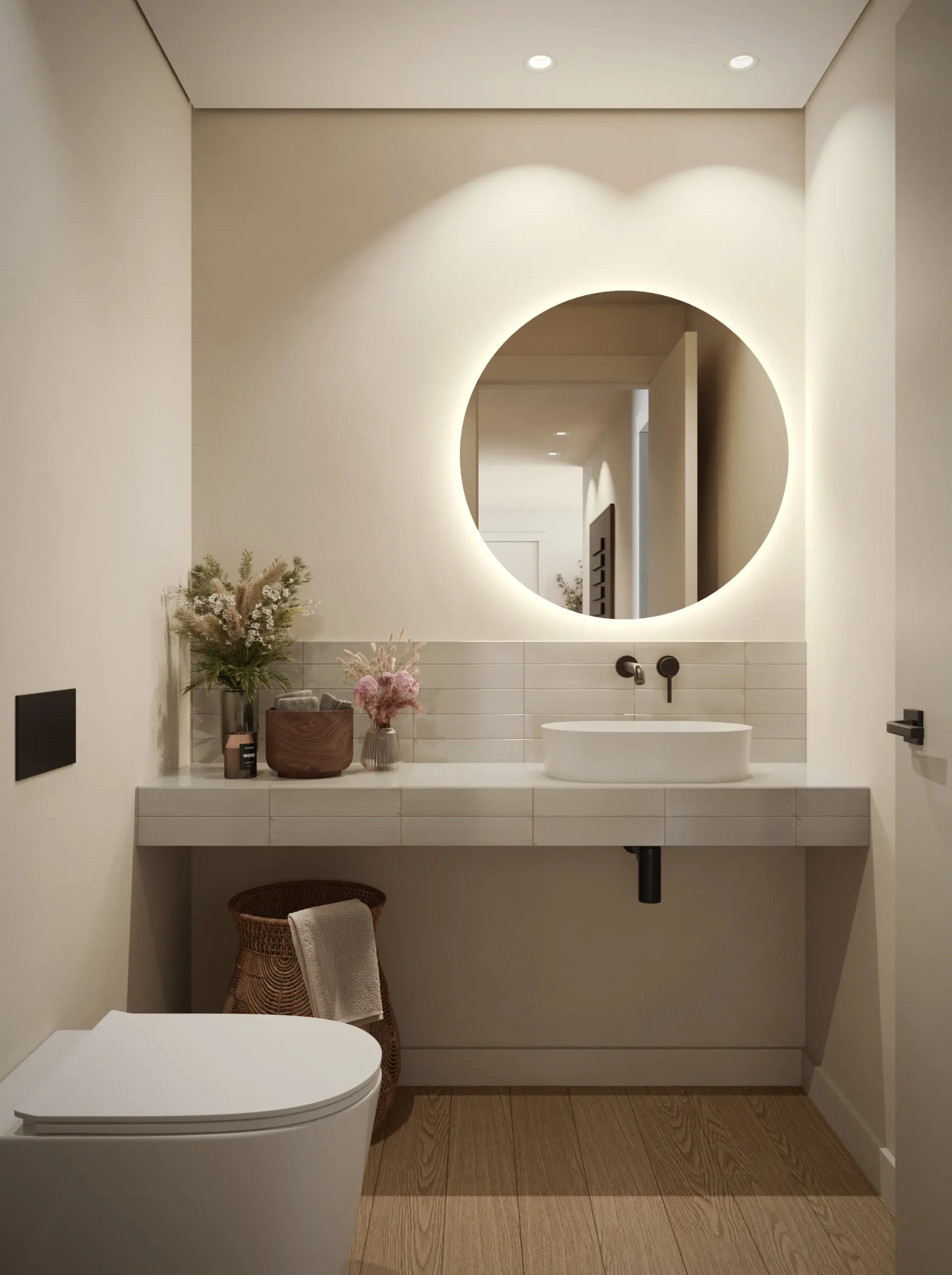 A design that prioritizes integration into the landscape, clarity of form, and quality of living space. A water feature runs through the center of Rivus.